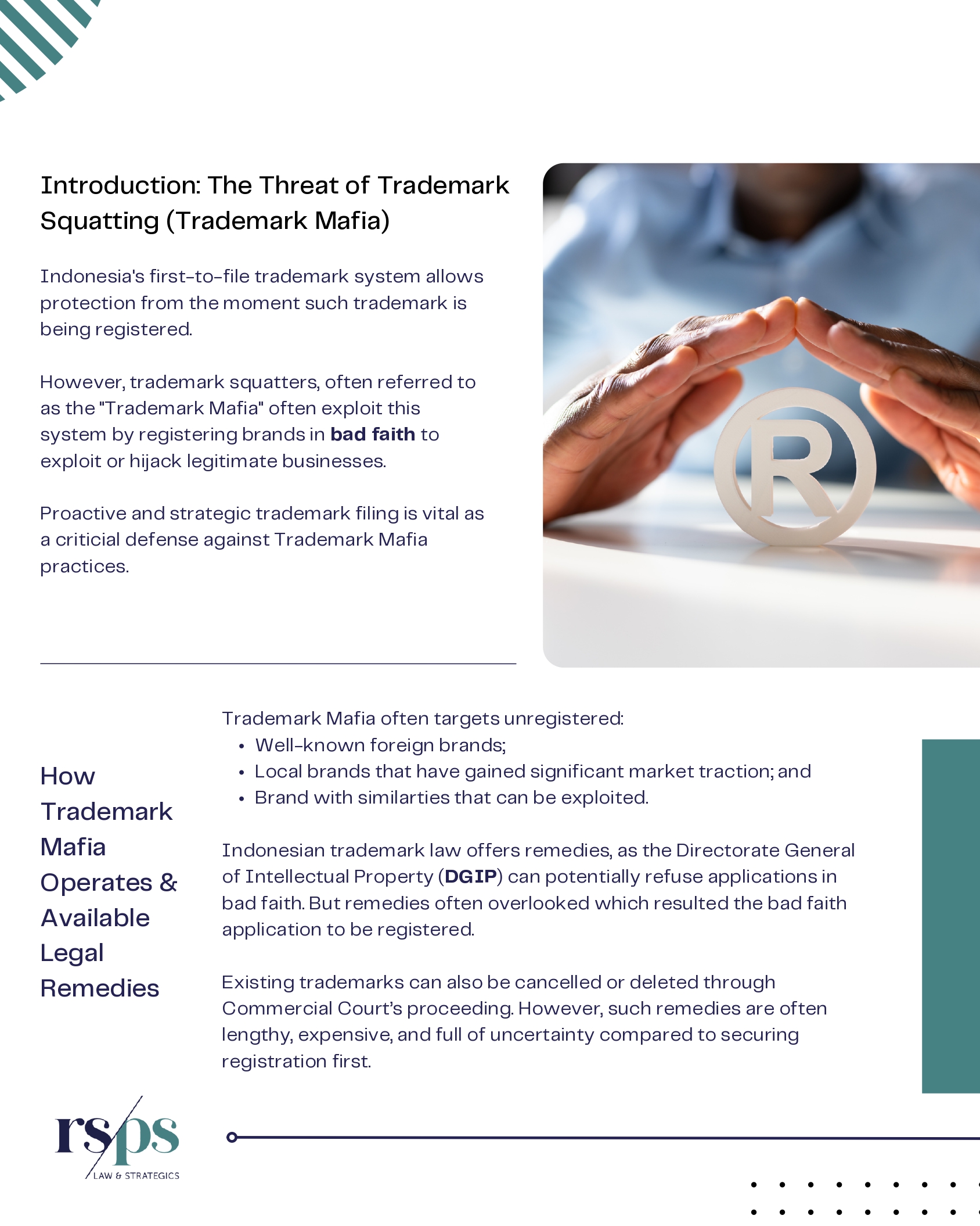 Protection against trademark squatters in Indonesia begins at the moment of registration itself. By securing timely and proper trademark filings, it can prevent bad-faith parties,